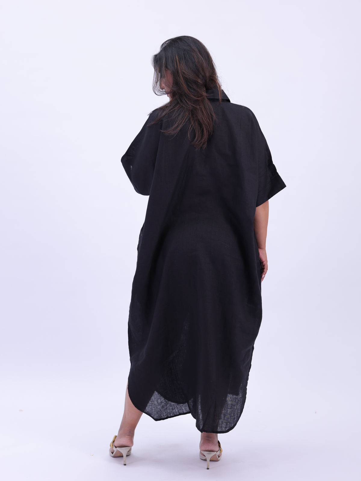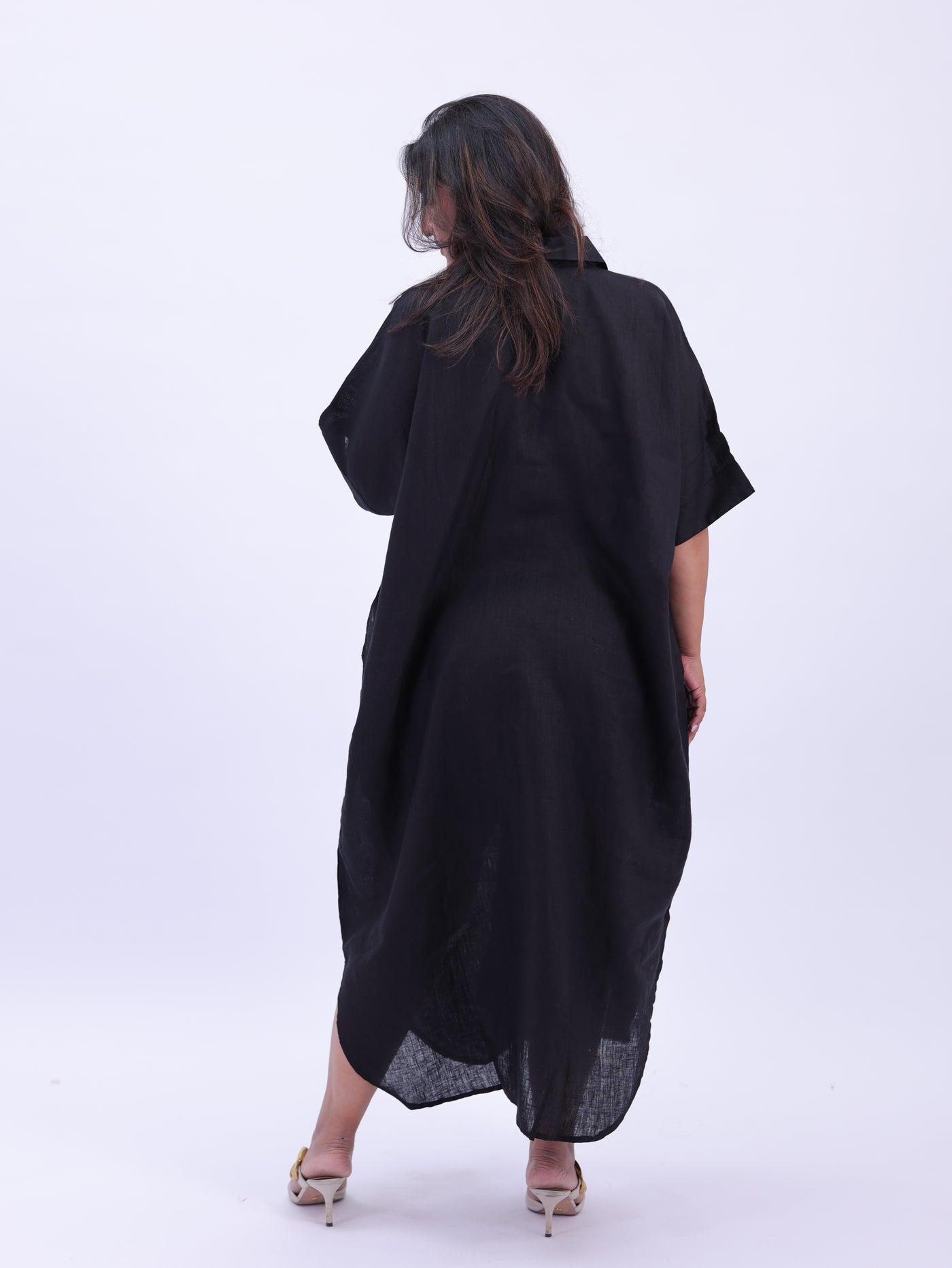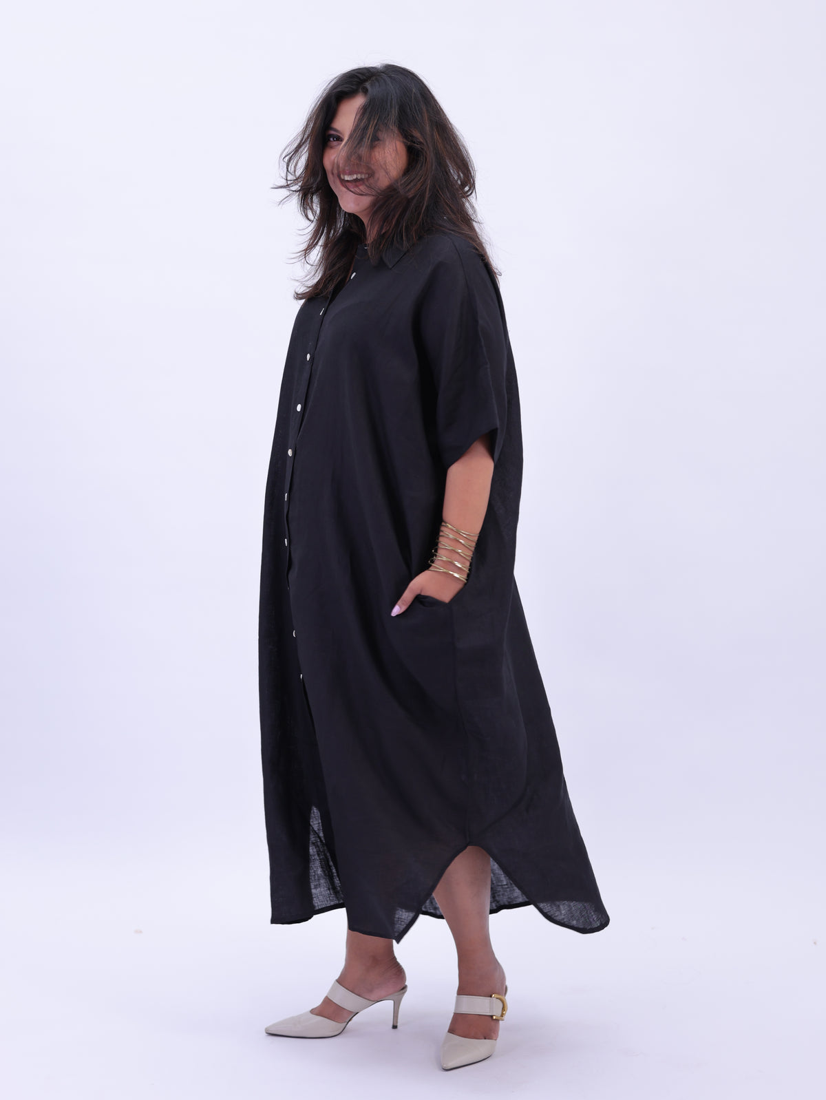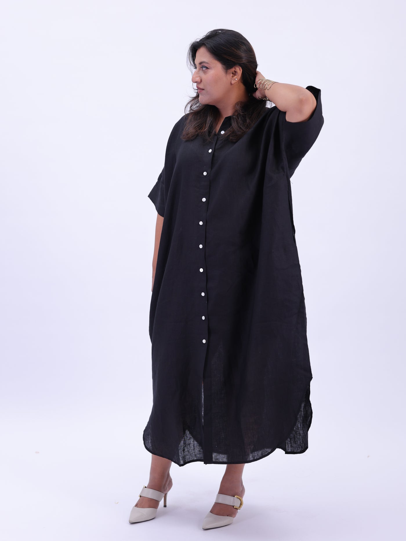 Samah Shirt Style Pure Linen Dress - Black