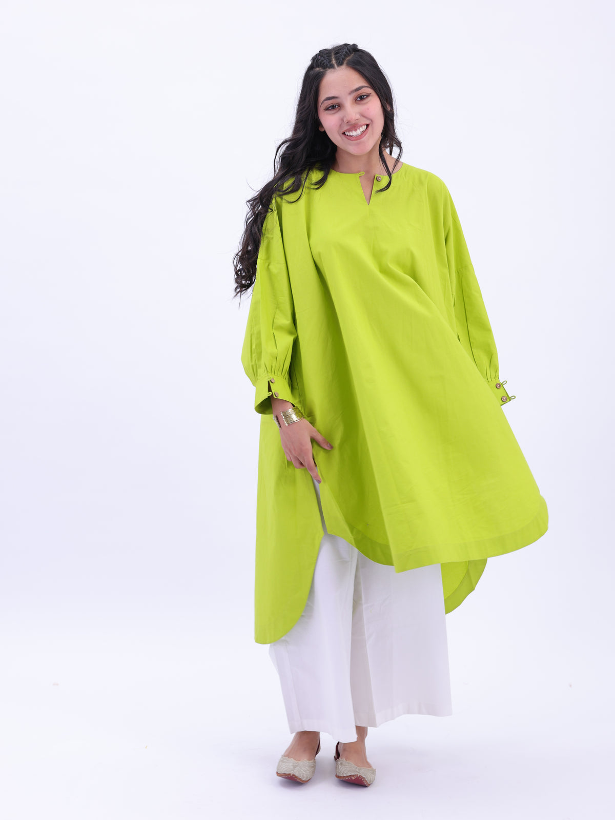 Each Apara piece is crafted using natural and premium fabrics such as 100% cotton, pure linen, silk, and crepe — chosen for their breathability, comfort, and timeless beauty. These fabrics age gracefully, becoming softer with every wear, embodying our philosophy of slow and sustainable fashion.
