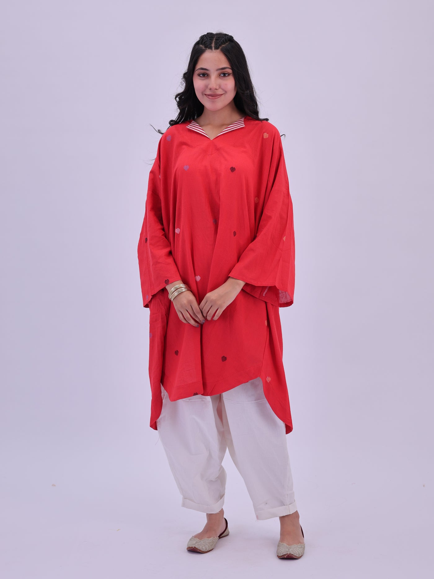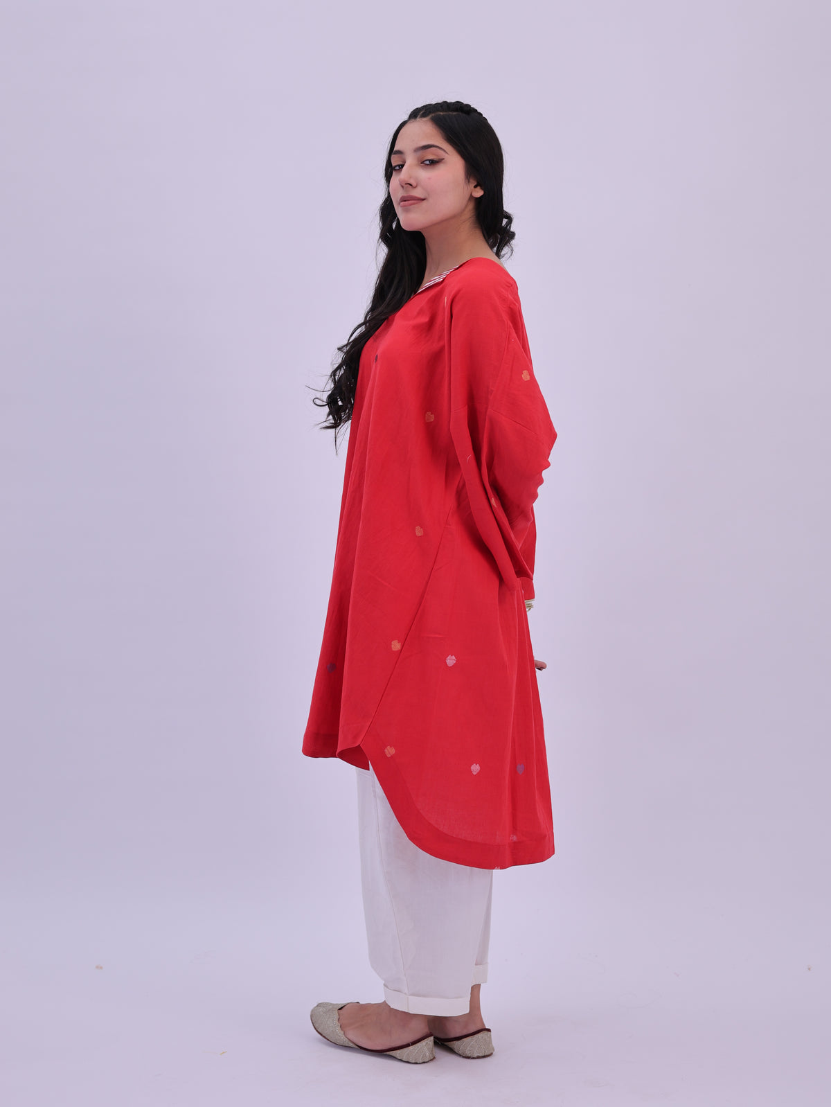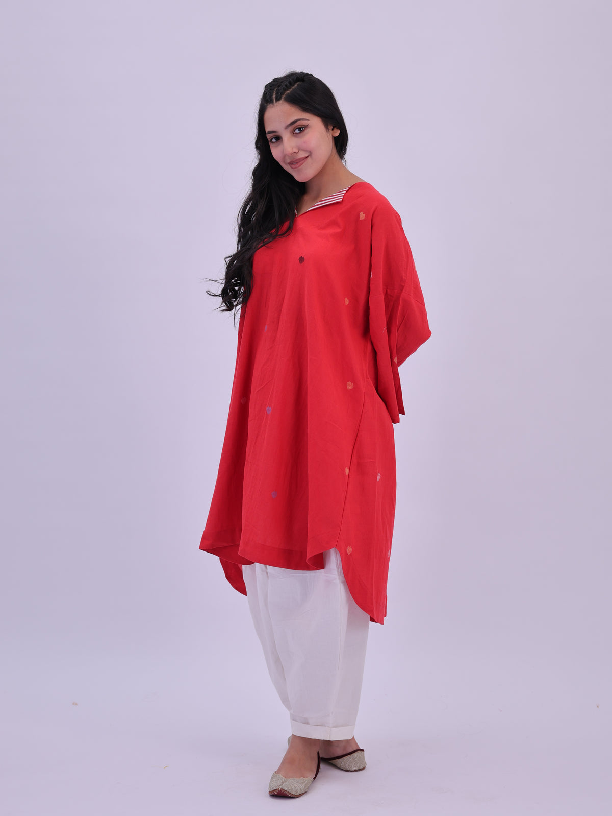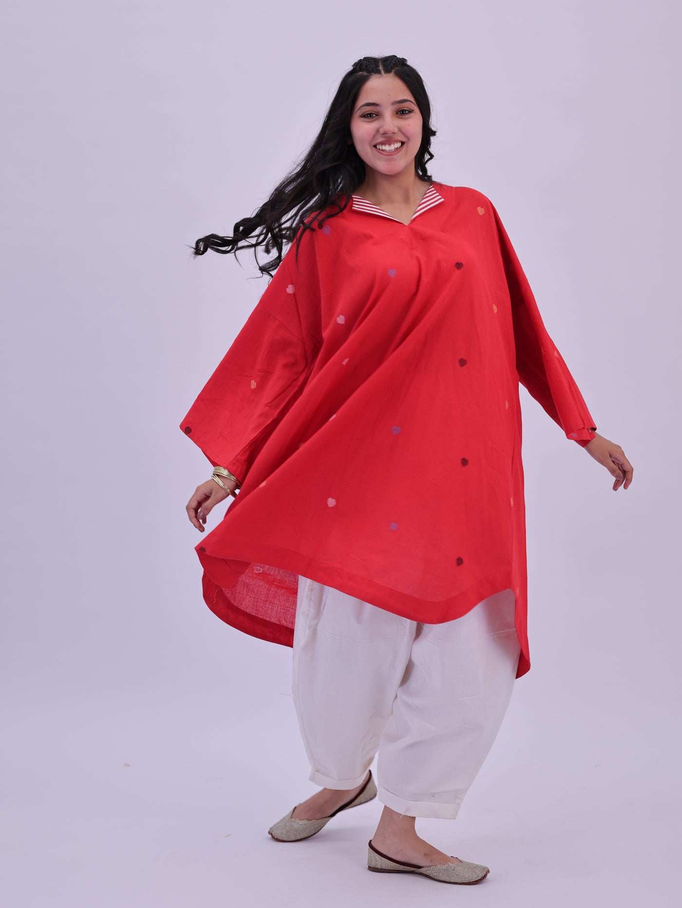 "Rumi" handloom cotton Jamdani Kurta Red - S