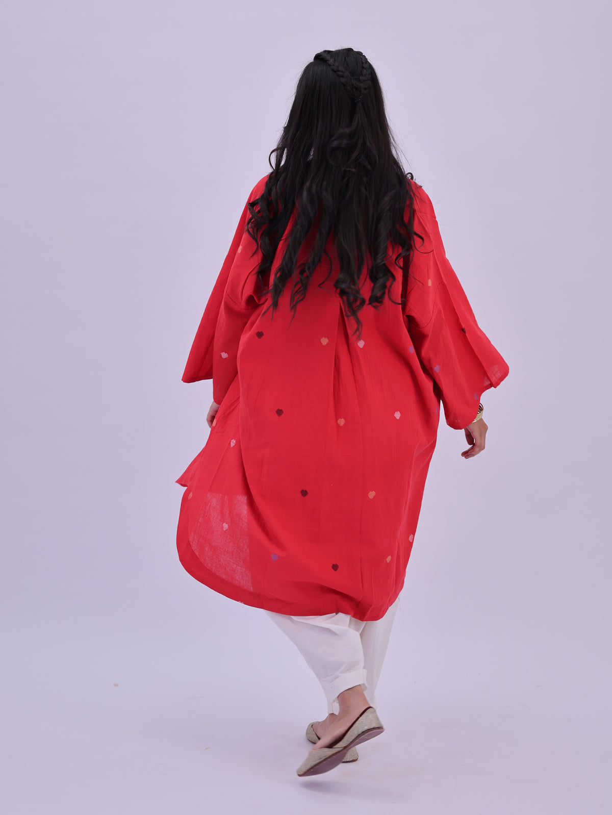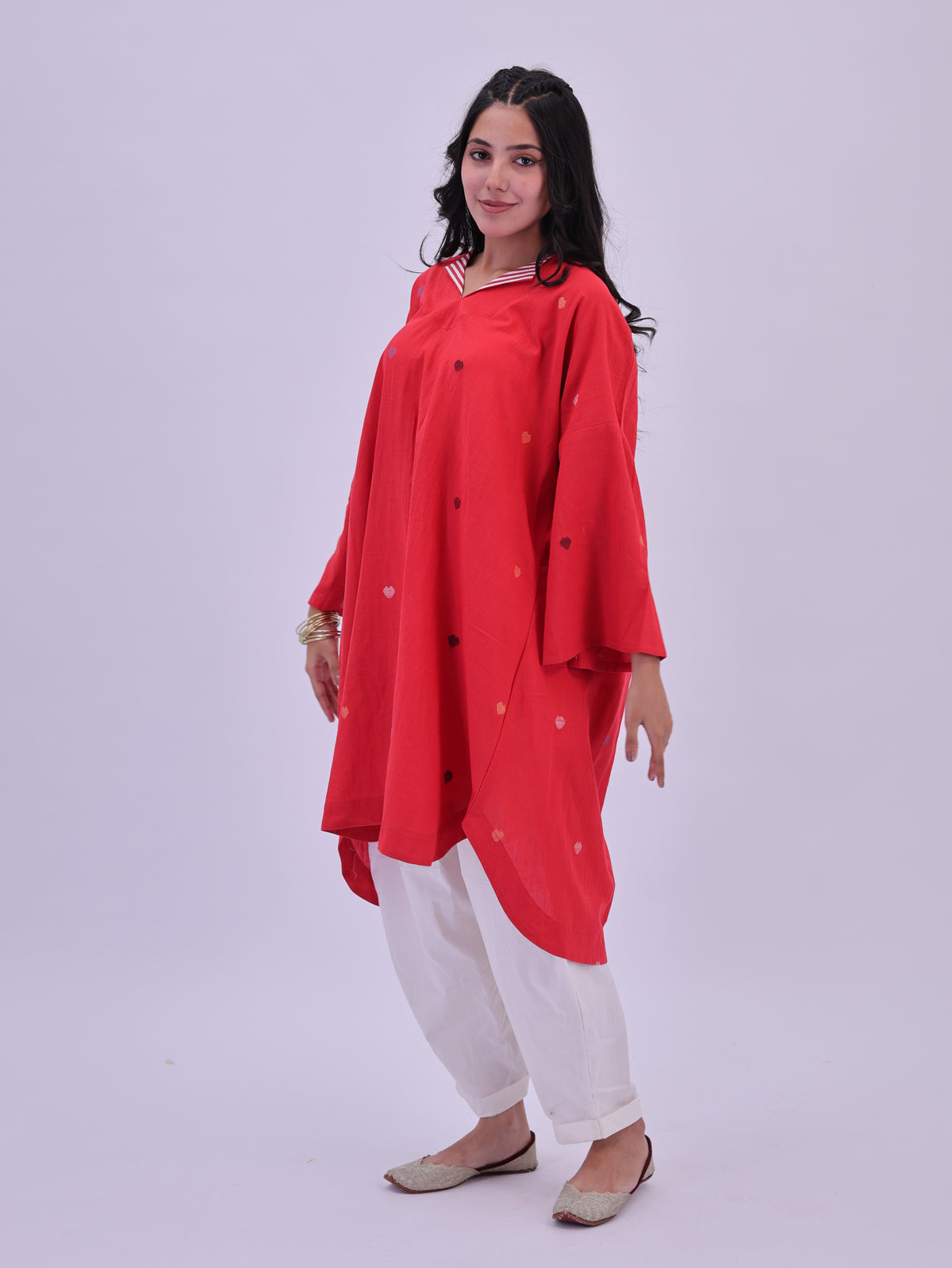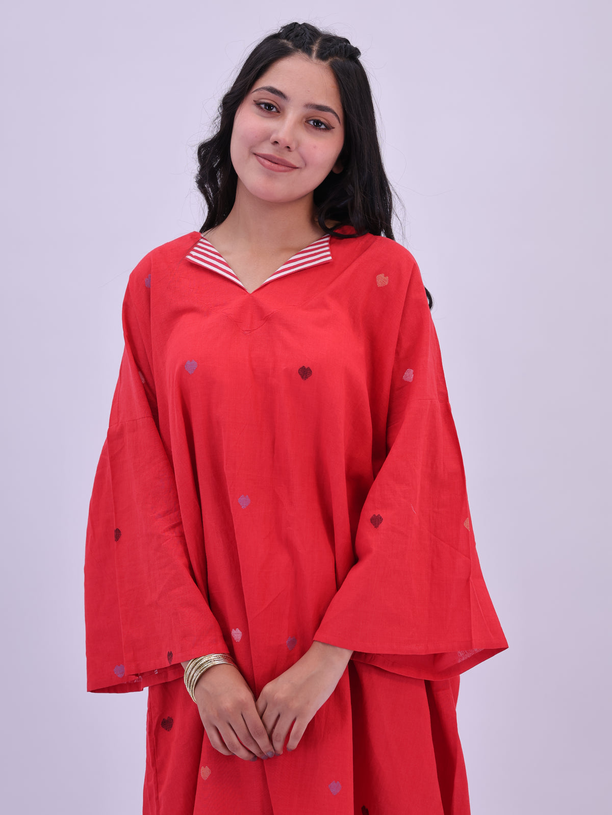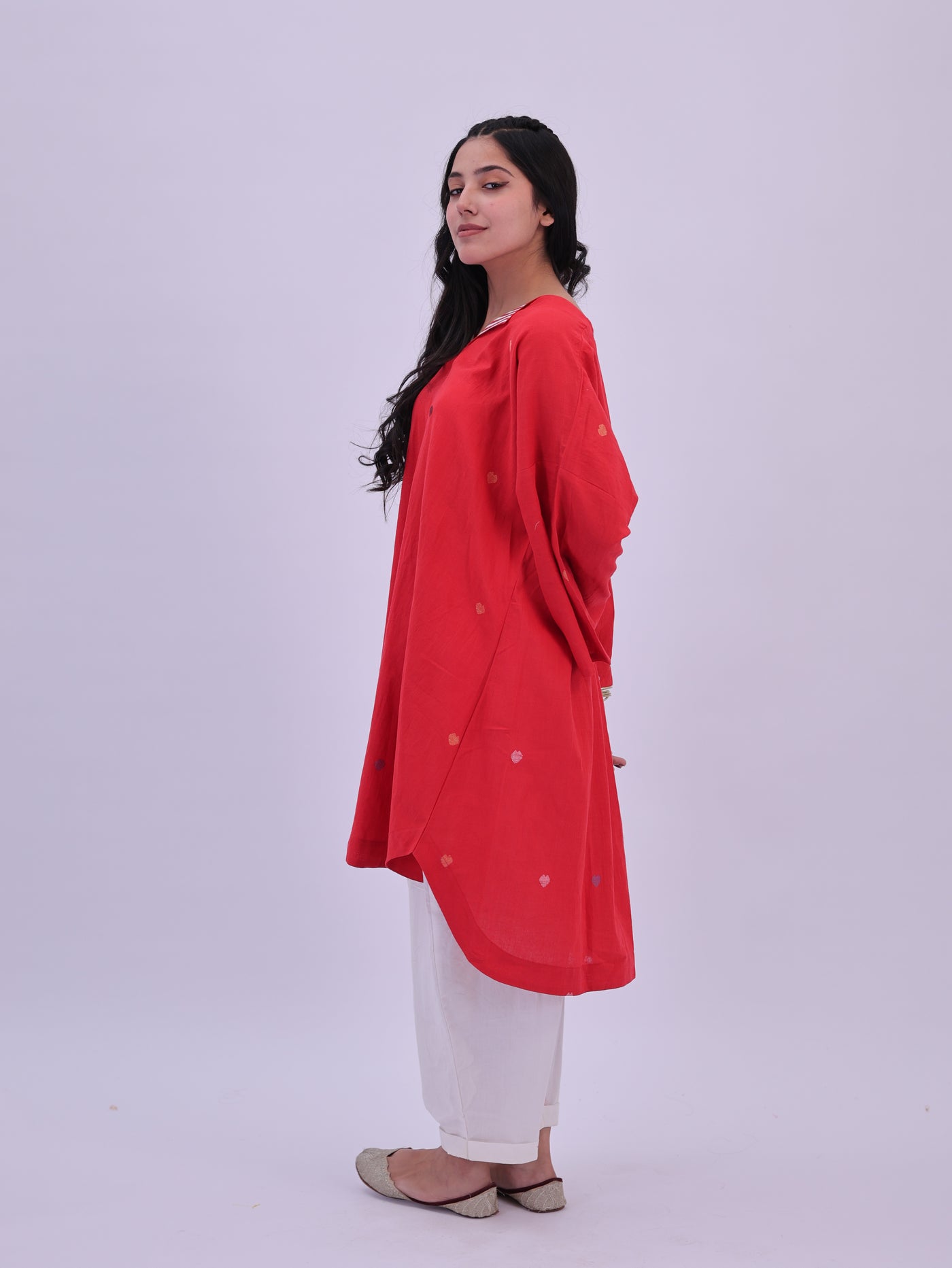 "Rumi" handloom cotton Jamdani Kurta Red - S