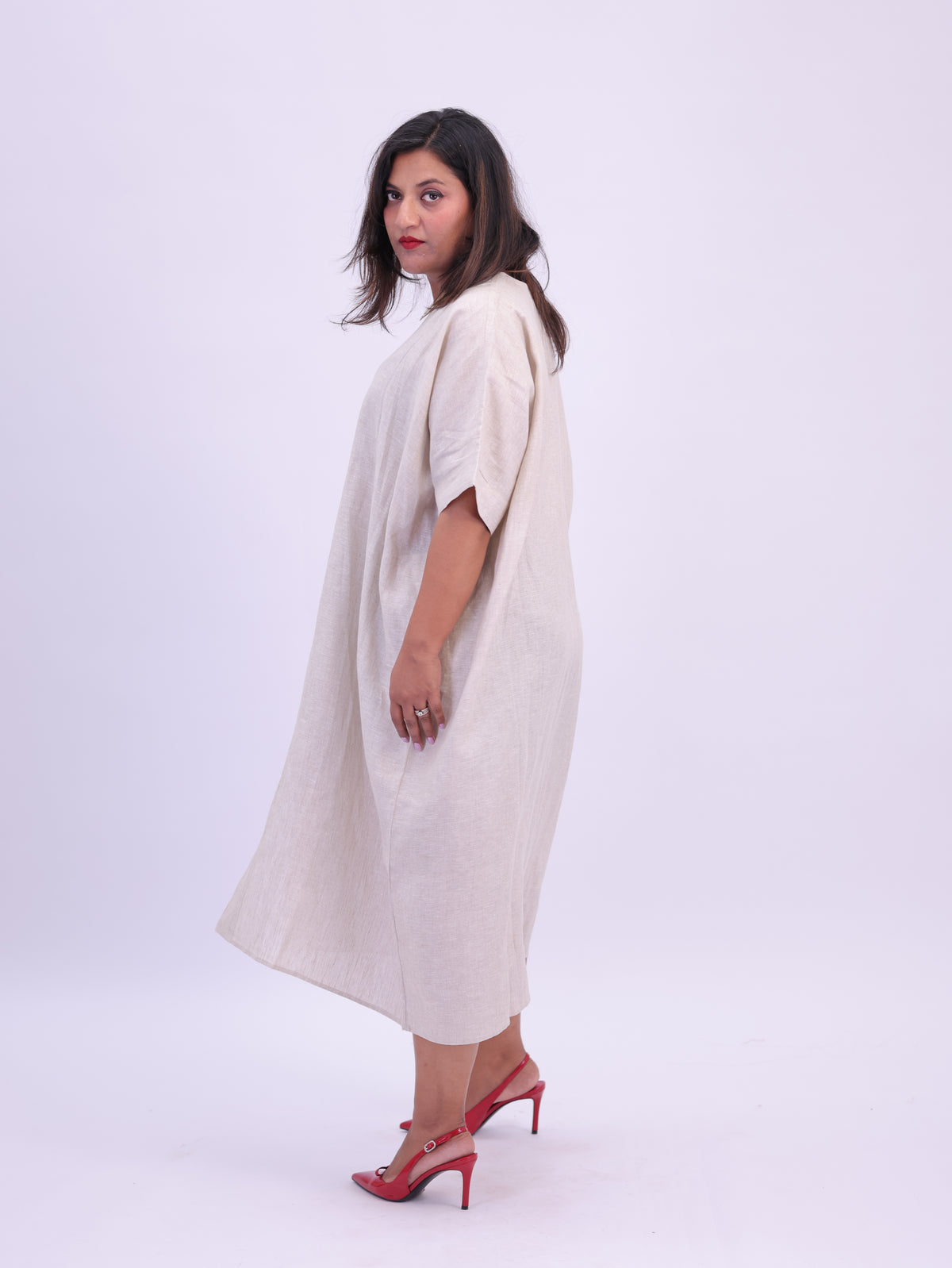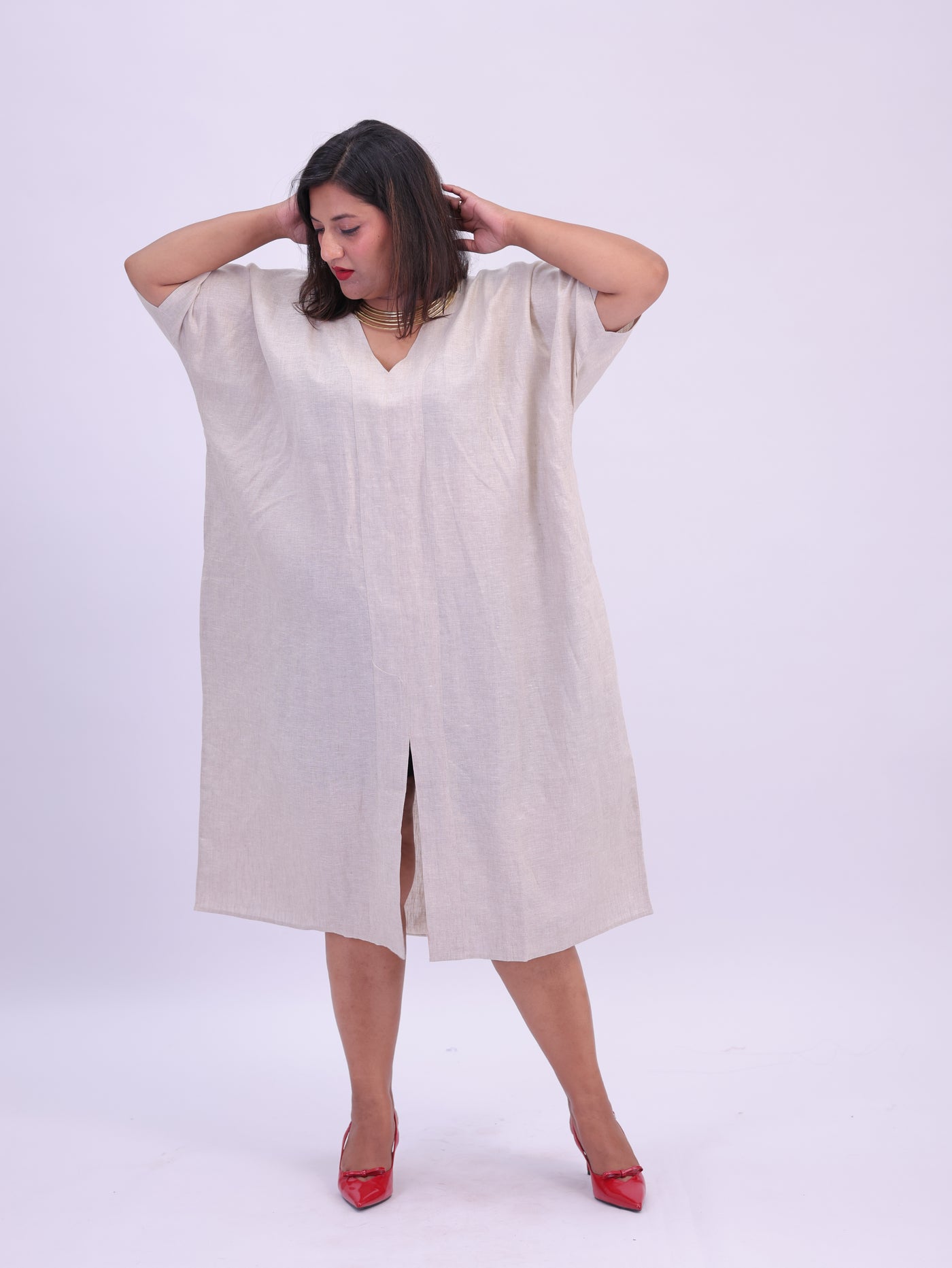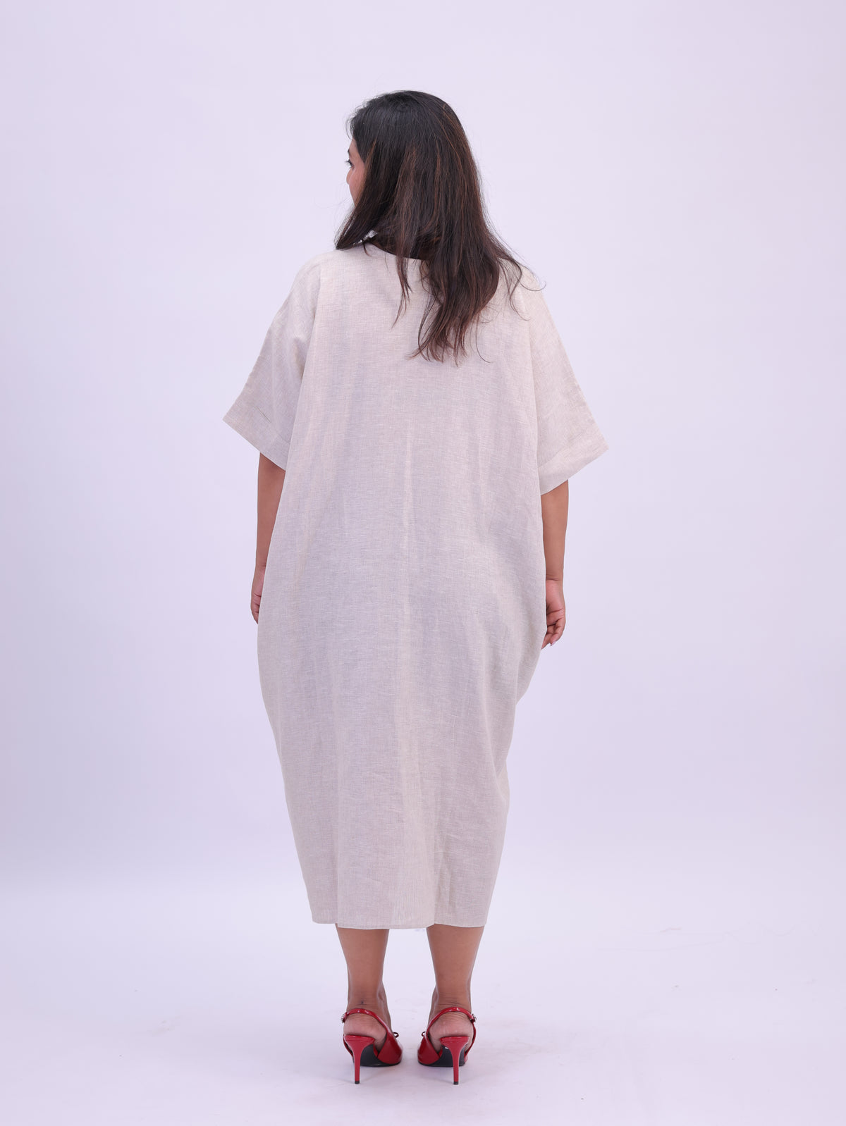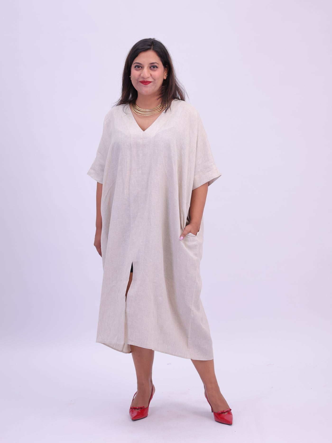 Saba Pure Linen Kaftan Dress - Natural Beige