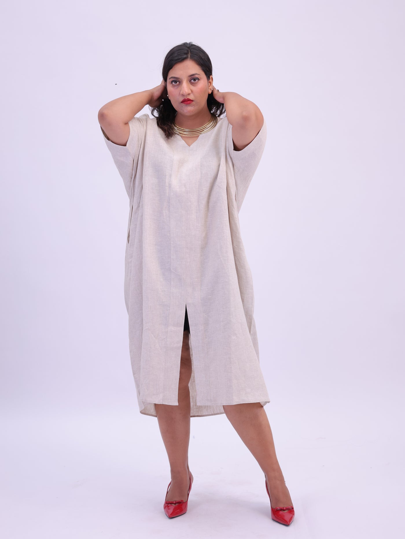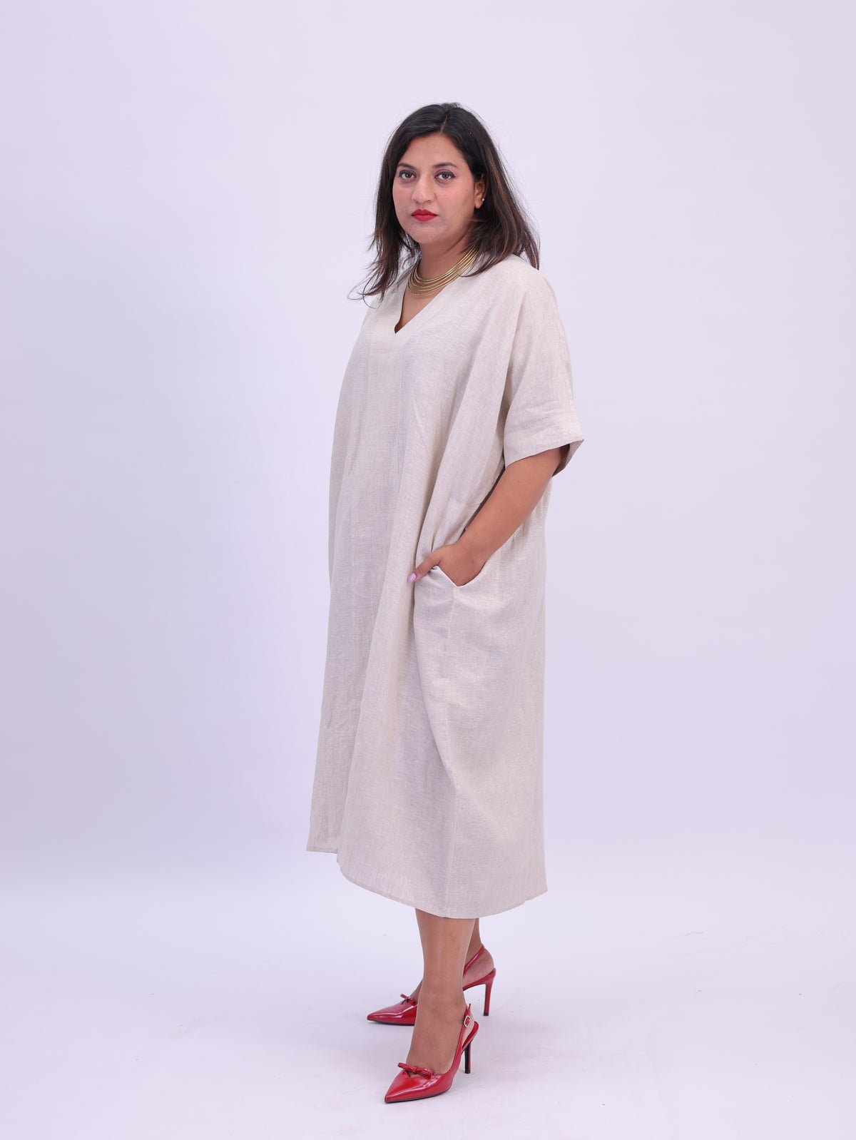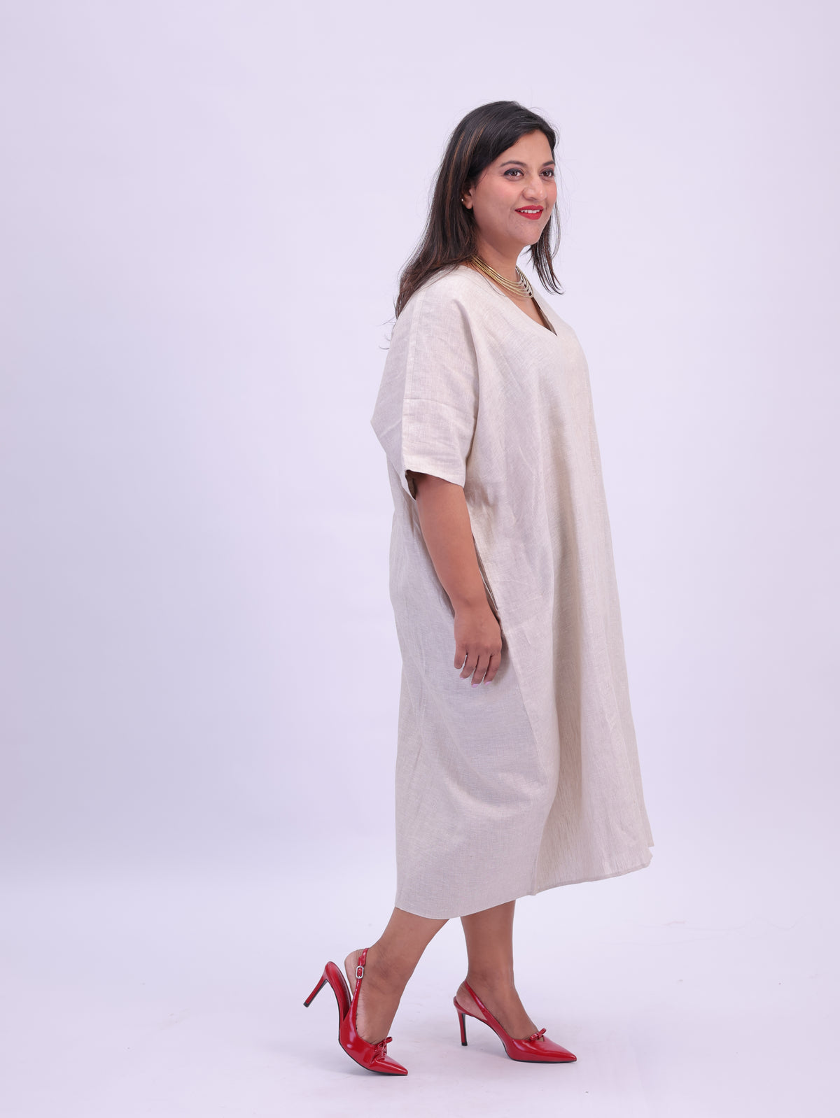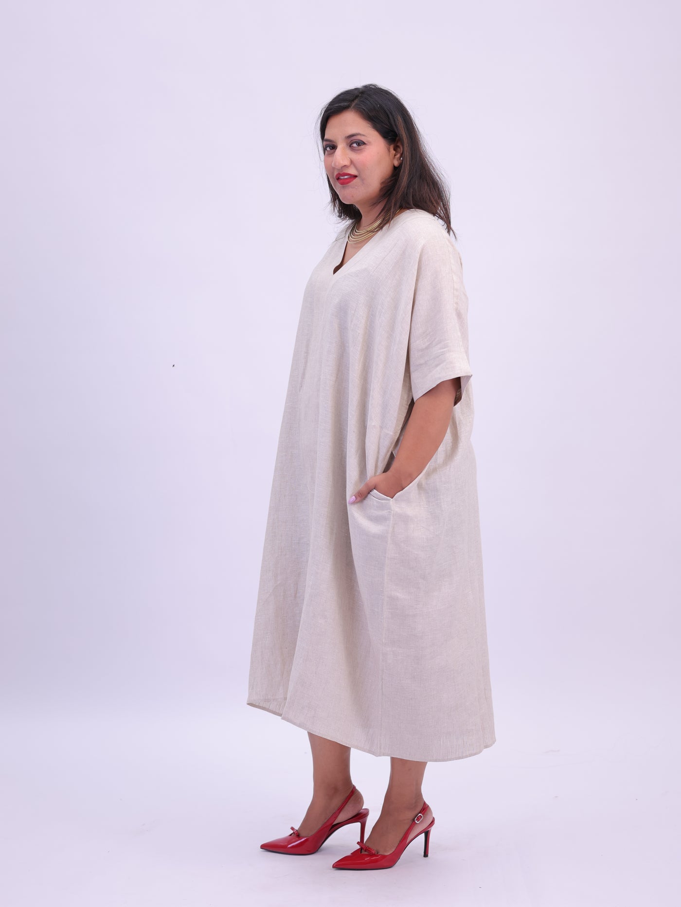 Saba Pure Linen Kaftan Dress - Natural Beige